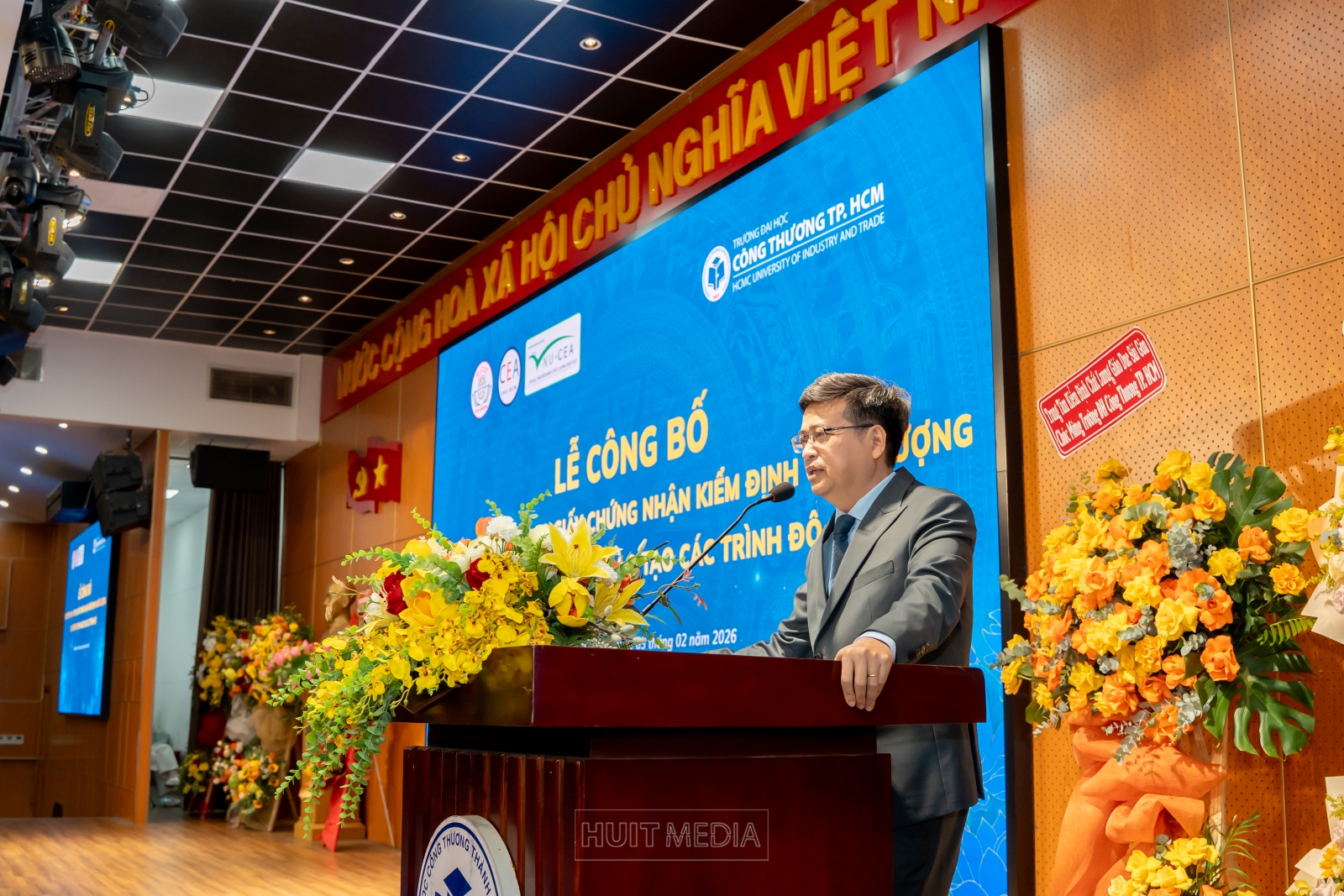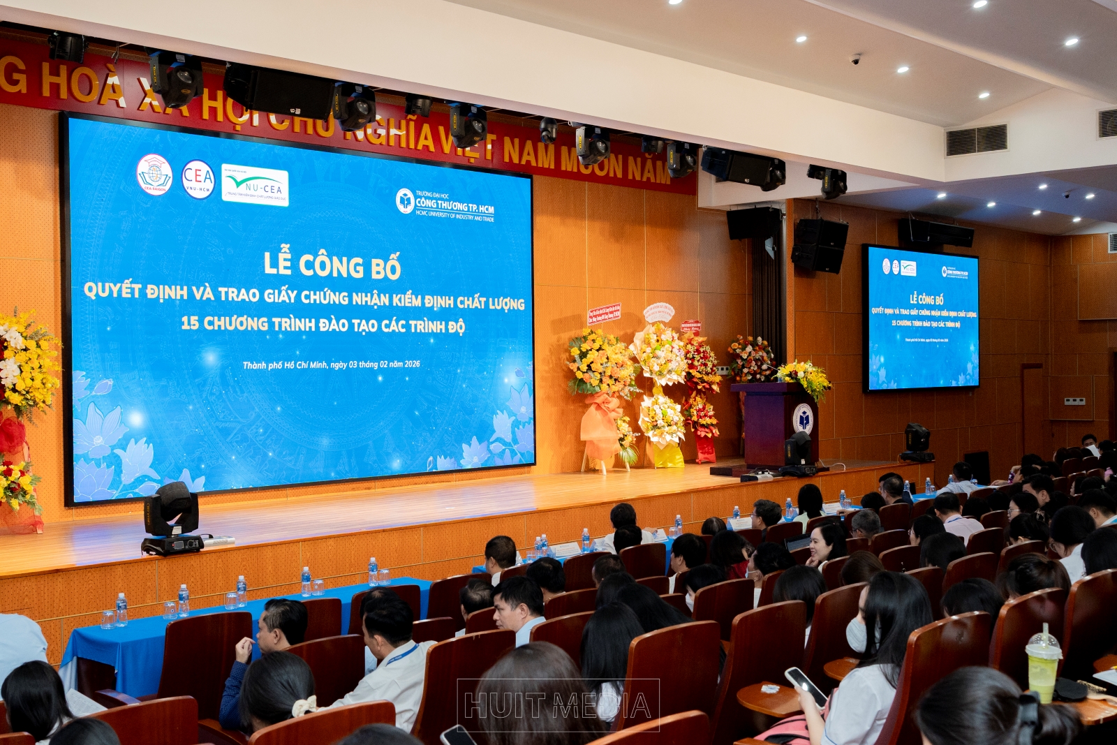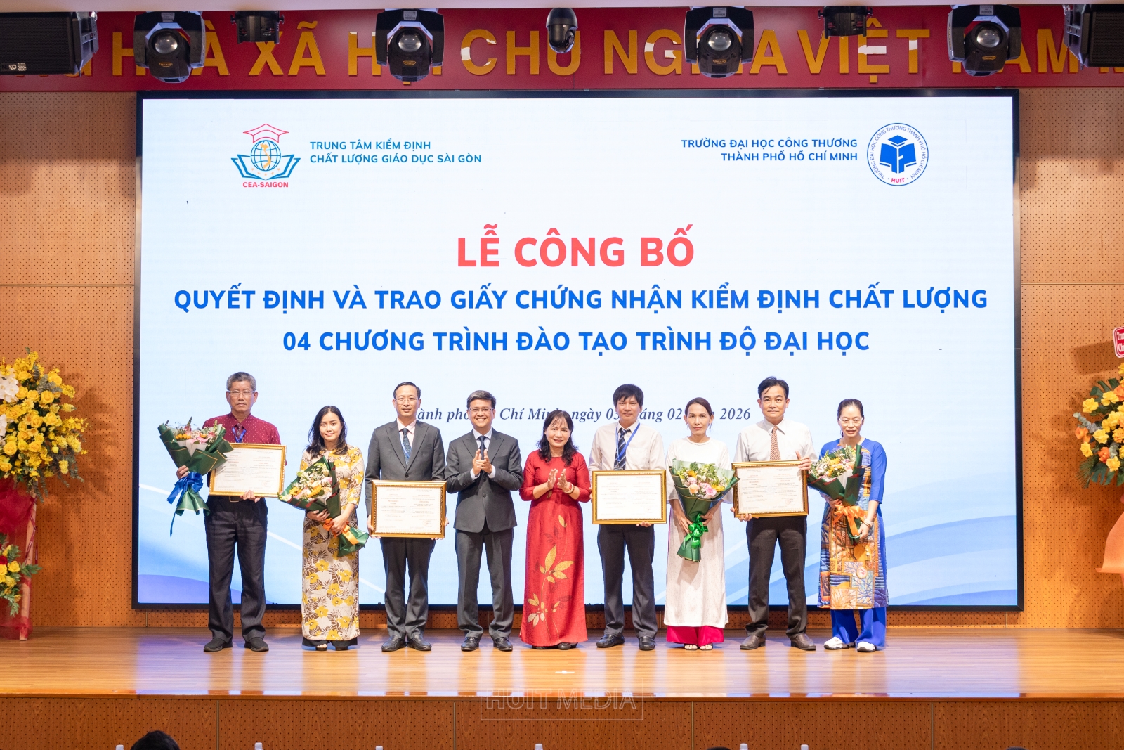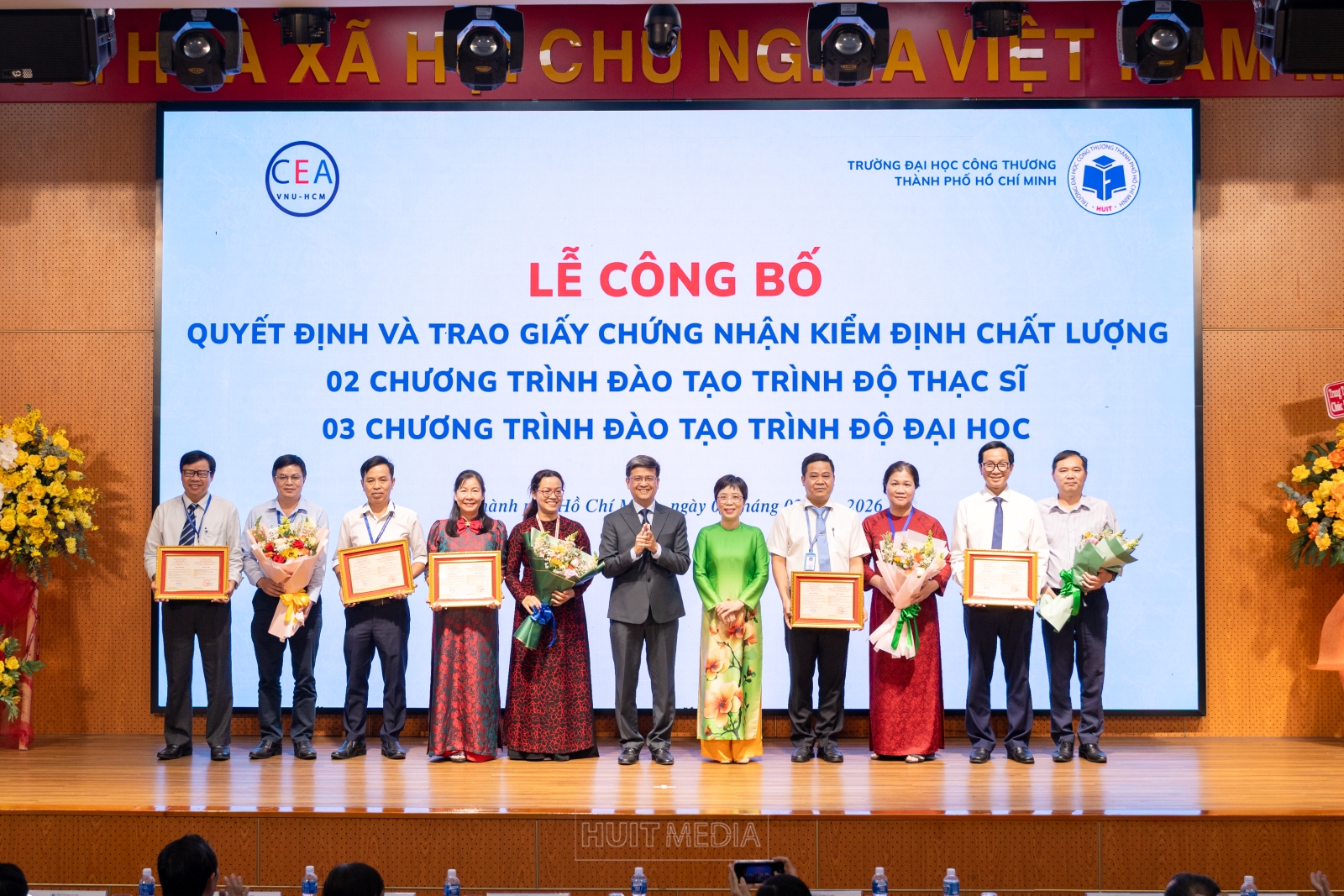 Chiều ngày 03/02/2026, Trường Đại học Công Thương (HUIT) đã tổ chức Lễ công bố quyết định và trao Giấy chứng nhận kiểm định chất lượng 15 chương trình đào tạo các trình độ của Nhà trường. Buổi lễ được tổ chức nhằm ghi nhận những nỗ lực bền bỉ, tinh thần trách nhiệm và sự đồng lòng của toàn thể Nhà trường trong hành trình không ngừng nâng cao chất lượng đào tạo, đáp ứng yêu cầu của xã hội và hội nhập giáo dục đại học.
