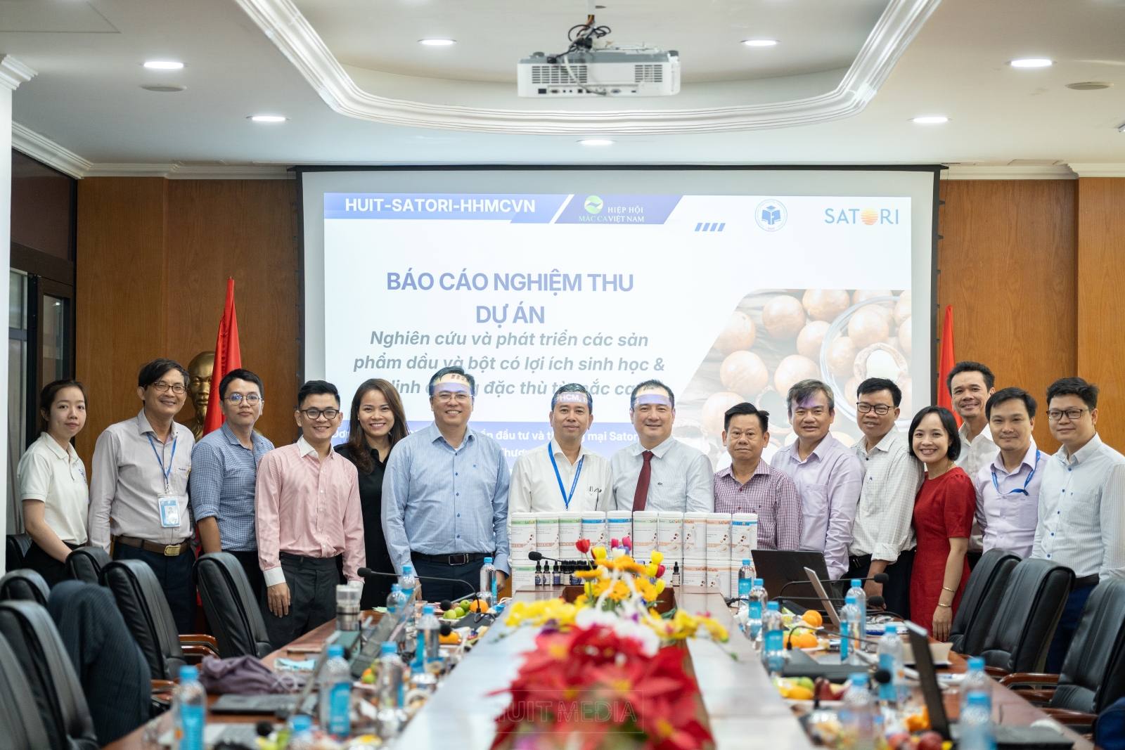 On the morning of December 18, 2025, the Ho Chi Minh City University of Industry and Trade (HUIT), in collaboration with Satori Investment and Trading Joint Stock Company, organized the acceptance ceremony for the project: "Research and Development of Oil and Powder Products with Specific Biological and Nutritional Benefits from Macadamia." This event marks a significant milestone in the scientific research partnership between the university and the corporate sector. This key project was conducted over two years with contributions from faculty members of the Faculty of Food Science and Technology, in coordination with Satori and the Vietnam Macadamia Association.