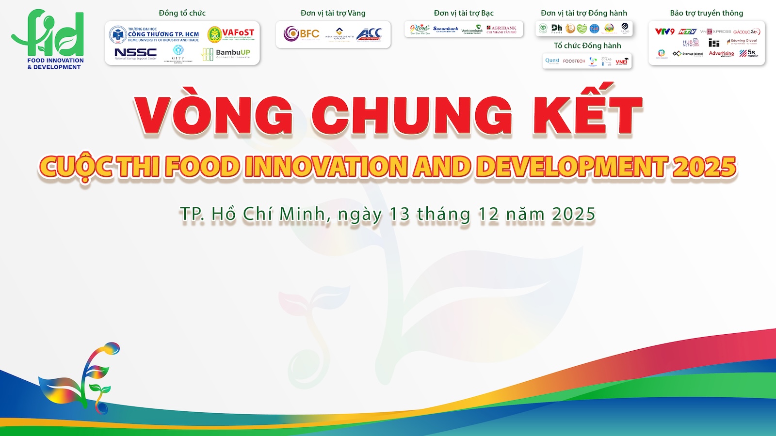 Thực hiện mục tiêu nâng cao năng lực đổi mới sáng tạo của sinh viên trong lĩnh vực Công nghệ thực phẩm và các ngành liên quan trong chuỗi giá trị ngành thực phẩm, Trường Đại học Công Thương Thành phố Hồ Chí Minh (HUIT) phối hợp cùng Hội Khoa học và Công nghệ lương thực - thực phẩm Việt Nam (VAFoST), Trung tâm hỗ trợ khởi nghiệp sáng tạo Quốc gia (NSSC), Nền tảng Đổi mới & Công nghệ Toàn cầu (GITP) và nền tảng kết nối đổi mới sáng tạo BambuUp tổ chức cuộc thi “Food Innovation and Development 2025” với chủ đề “The Future of Food - Tương lai ngành thực phẩm”.