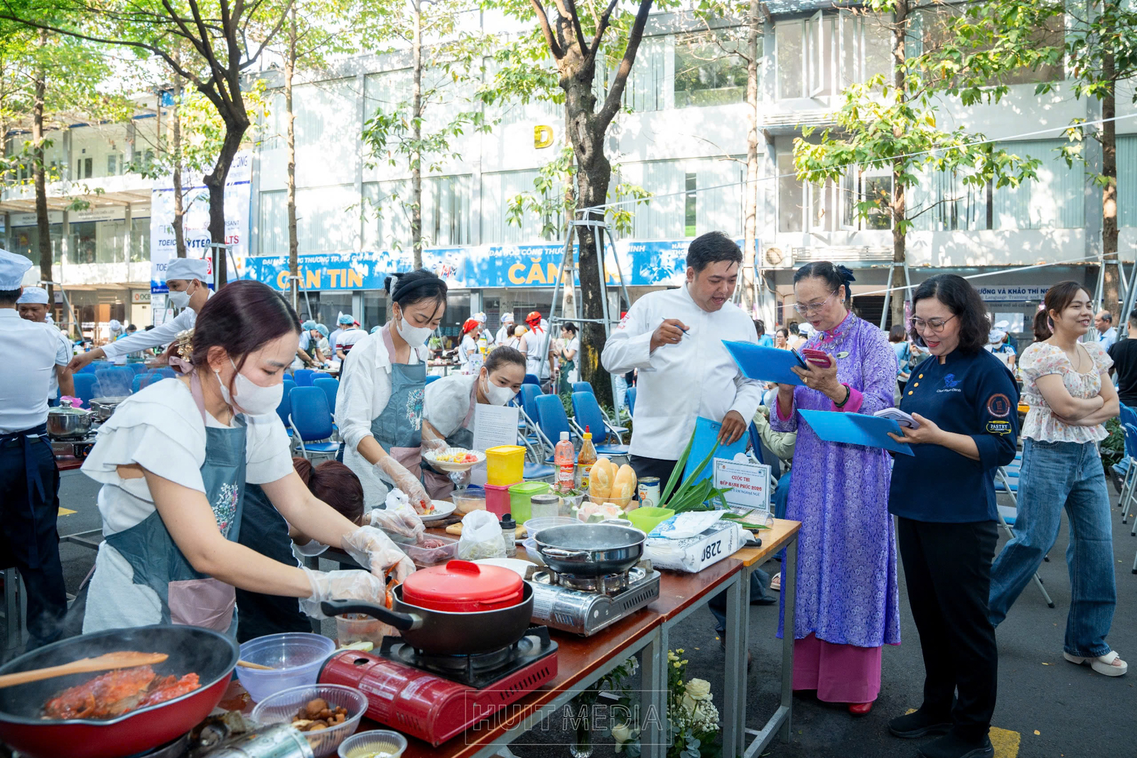 Một điểm nhấn nổi bật của hội thi năm nay là sự đồng hành của Ban Giám khảo gồm những chuyên gia ẩm thực uy tín, giàu kinh nghiệm và có chuyên môn sâu trong lĩnh vực ẩm thực. Tham gia chấm thi có Bà Lê Thị Kiều Oanh – Phó Chủ tịch Hội Đầu bếp Chuyên nghiệp Sài Gòn; Ông Nguyễn Lâm Khang – Bếp trưởng điều hành Tập đoàn Sunwah Town; Bà Hồ Đắc Thiếu Anh – Nghệ nhân Văn hóa Ẩm thực Việt Nam. Với kiến thức chuyên môn vững vàng và góc nhìn thực tiễn phong phú, Ban Giám khảo đã góp phần bảo đảm tính công tâm, chất lượng cho hội thi, đồng thời mang đến nhiều nhận xét sâu sắc, giàu giá trị nghề nghiệp, truyền thêm cảm hứng để các đội thi tiếp tục sáng tạo và nâng tầm nghệ thuật ẩm thực.