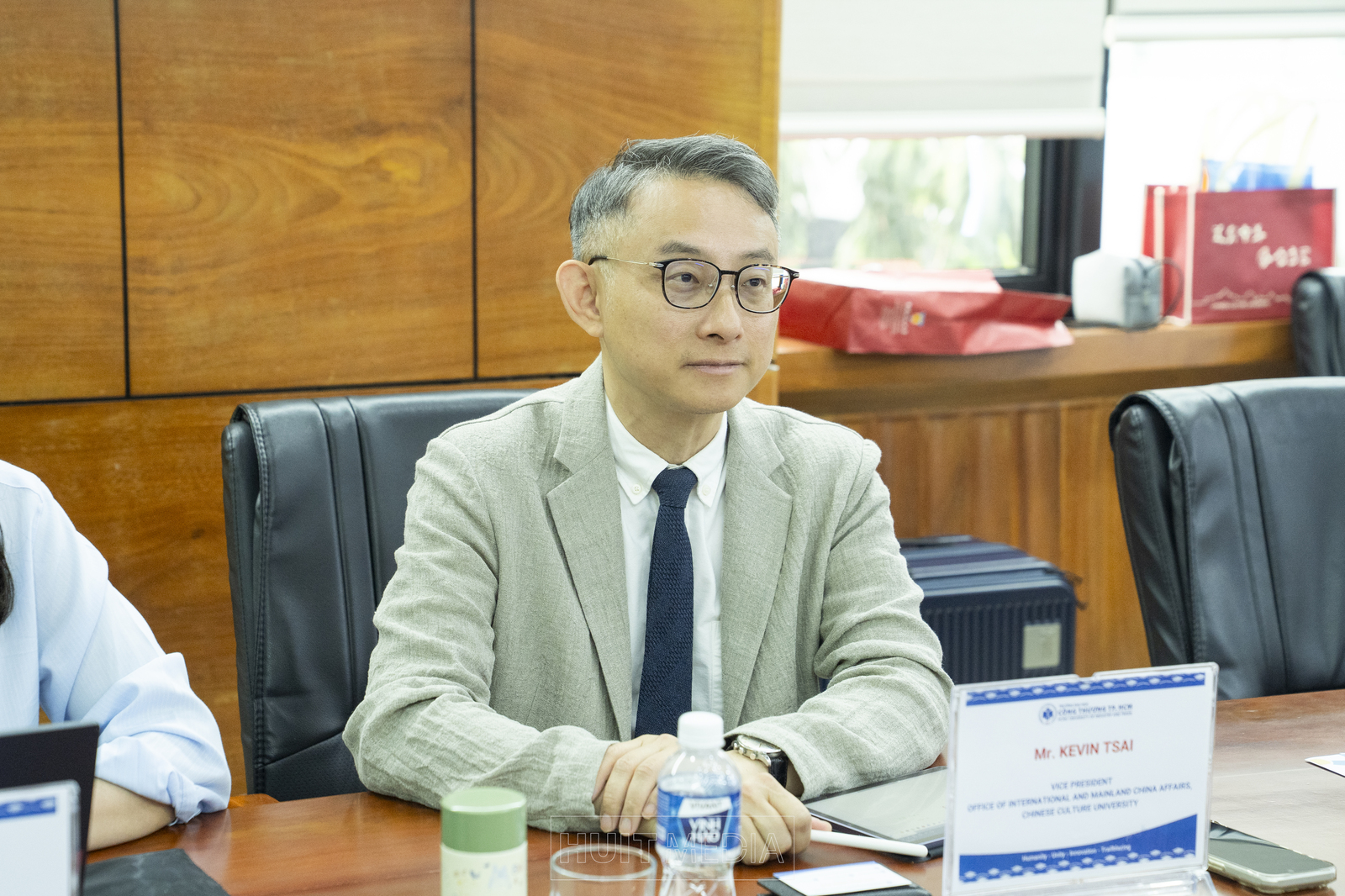 Ngày 13/4/2026, tại Trường Đại học Công Thương TP.HCM (HUIT), TS. Thái Doãn Thanh – Phó Hiệu trưởng Nhà trường đã có buổi đón tiếp và làm việc với ông Kevin Tsai – Phó Hiệu trưởng Đại học Văn hóa Trung Quốc (Đài Loan), nhằm trao đổi và định hướng hợp tác trong lĩnh vực đào tạo và phát triển học thuật.