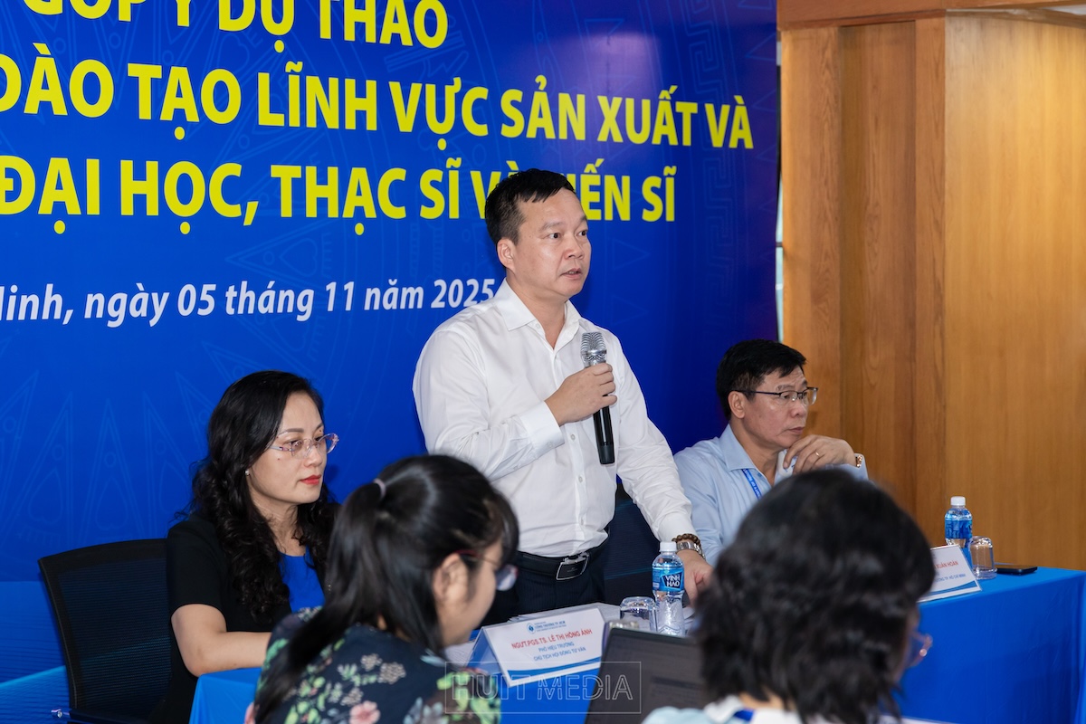 Phiên thảo luận diễn ra sôi nổi dưới sự điều hành của PGS.TS. Nguyễn Anh Dũng, NGƯT.PGS.TS. Nguyễn Xuân Hoàn và NGƯT.PGS.TS. Lê Thị Hồng Ánh. Các đại biểu đã trao đổi, đóng góp nhiều ý kiến tâm huyết xoay quanh việc xây dựng khung năng lực, mô hình đào tạo tích hợp giữa lý thuyết – thực hành – nghiên cứu, cơ chế phối hợp giữa nhà trường và doanh nghiệp, cũng như các giải pháp để chuẩn chương trình thực sự phản ánh yêu cầu phát triển kinh tế – xã hội và xu hướng toàn cầu.