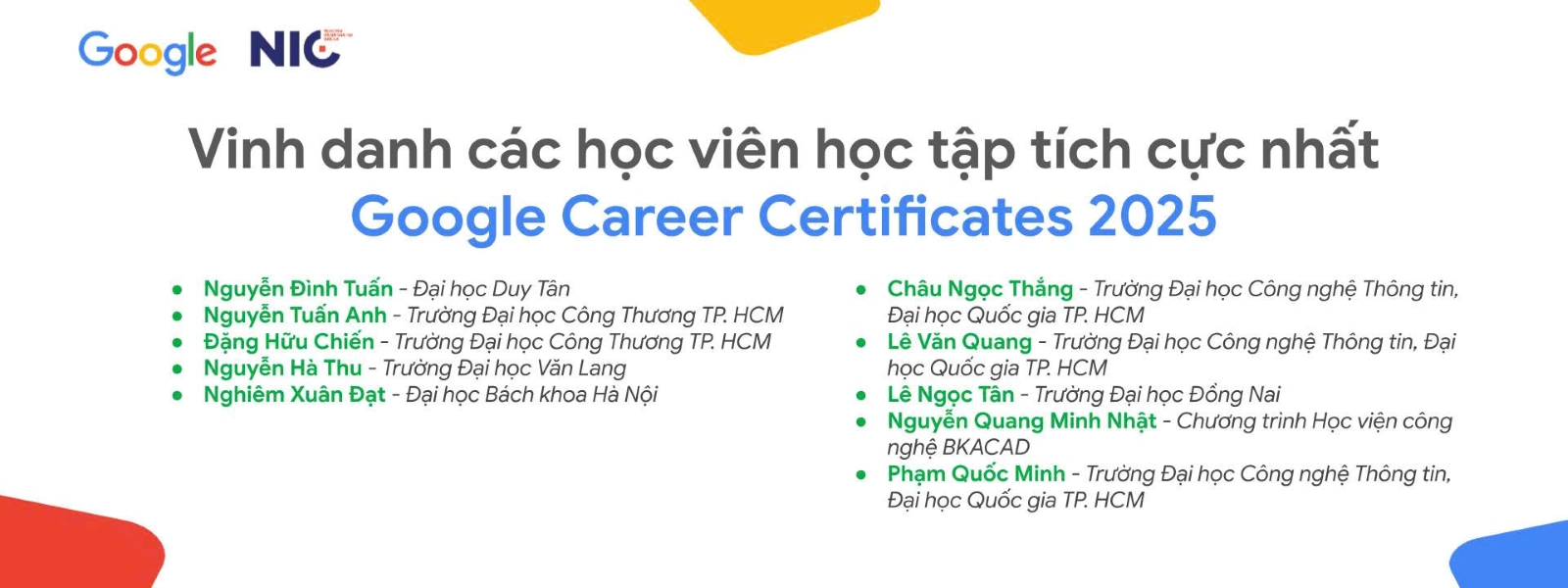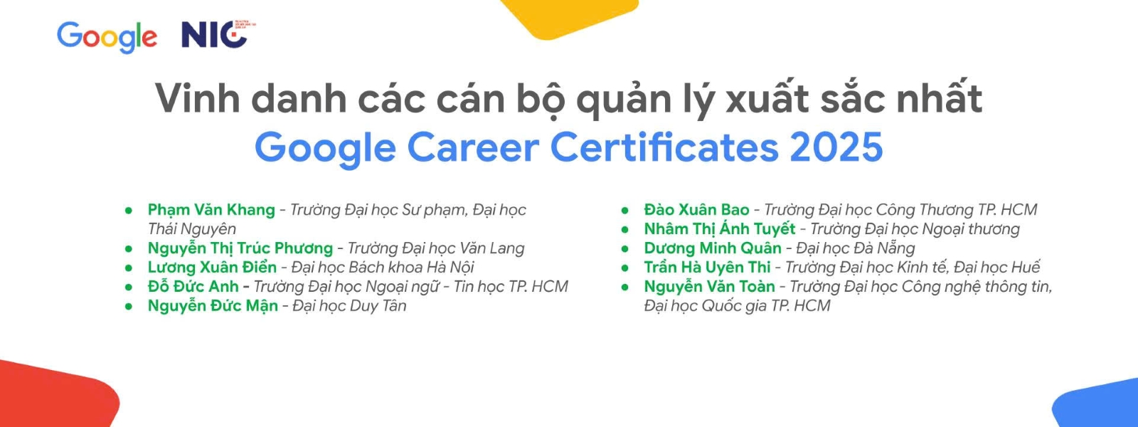 Chiều 01/10/2025 tại Hà Nội, trong chuỗi các hoạt động Ngày hội đổi mới sáng tạo Quốc gia năm 2025 do Trung tâm Đổi mới sáng tạo Quốc gia (NIC) - Bộ Tài chính phối hợp với Bộ Khoa học và Công nghệ, Tập đoàn Google tổ chức Lễ Tổng kết Chương trình Phát triển nhân tài số. Sự kiện nhằm đánh giá, tổng kết, khen thưởng, tôn vinh các tập thể, cá nhân có thành tích xuất sắc đồng thời công bố kế hoạch năm 2026.