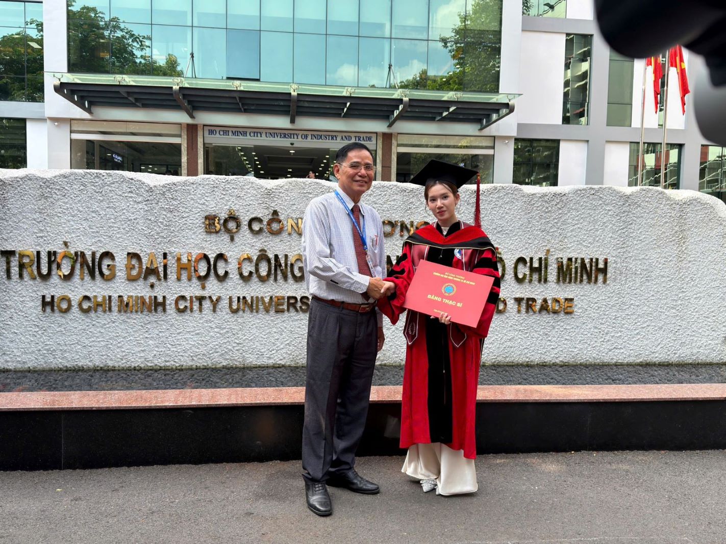 Tình cảm mà thầy dành cho người học cũng được thể hiện rõ qua cách thầy đồng hành trong học tập và nghiên cứu. Bạn Bùi Thị Hoài Ngọc, thạc sĩ Quản trị kinh doanh vừa làm lễ tốt nghiệp thạc sĩ hôm qua chia sẻ rằng: “Điều khiến chị tin tưởng và quý thầy ngay từ đầu là khi nhận hướng dẫn, thầy hỏi rất kỹ về đề tài và quan điểm khoa học của học viên. Với chị, đó là dấu hiệu của một người thầy thật sự tôn trọng học thuật và trân trọng suy nghĩ riêng của người học. Trong suốt quá trình hướng dẫn, thầy luôn nhiệt tình đến mức khiến chị ngạc nhiên. Có những lúc gần 12 giờ đêm, thầy vẫn thức để chỉnh bài, liên hệ trao đổi và góp ý rất kỹ lưỡng. Sự tận tâm ấy, theo chị Hoài Ngọc, là điều rất đáng quý và để lại nhiều cảm phục”.