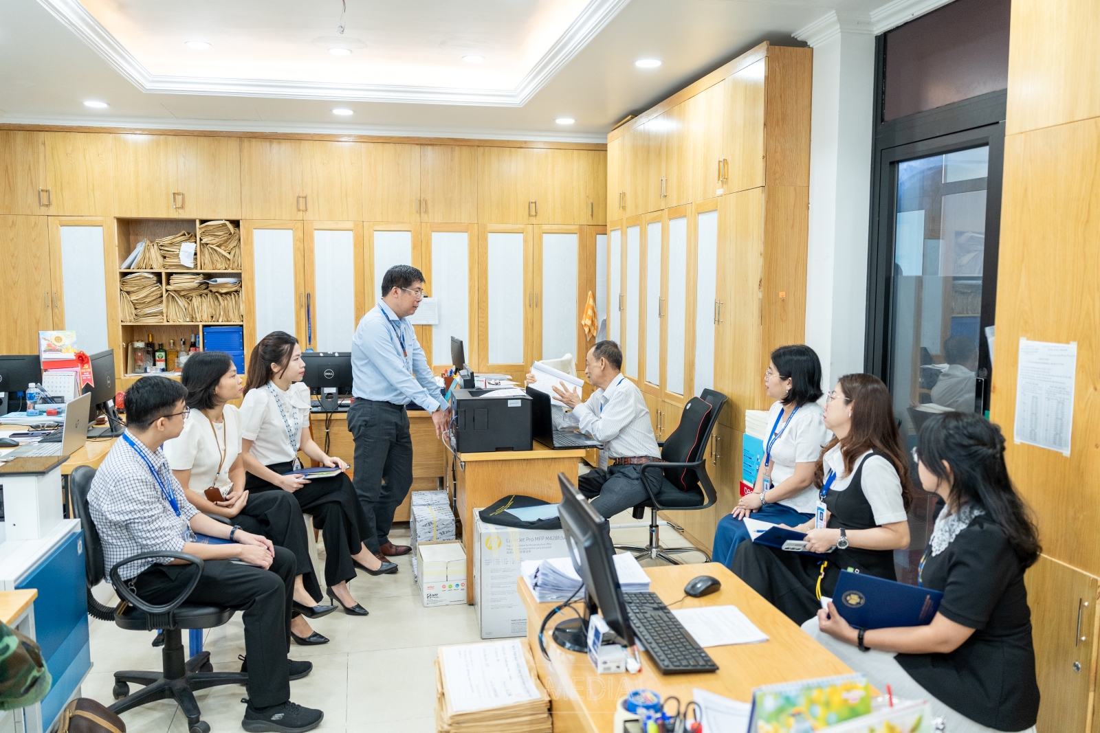 Đoàn tiến hành khảo sát cơ sở vật chất tại một số phòng ban của Nhà trường, bao gồm Phòng Khoa học công nghệ, Phòng Tổ chức hành chính, Phòng Đào tạo và Trung tâm Quản lý chất lượng
