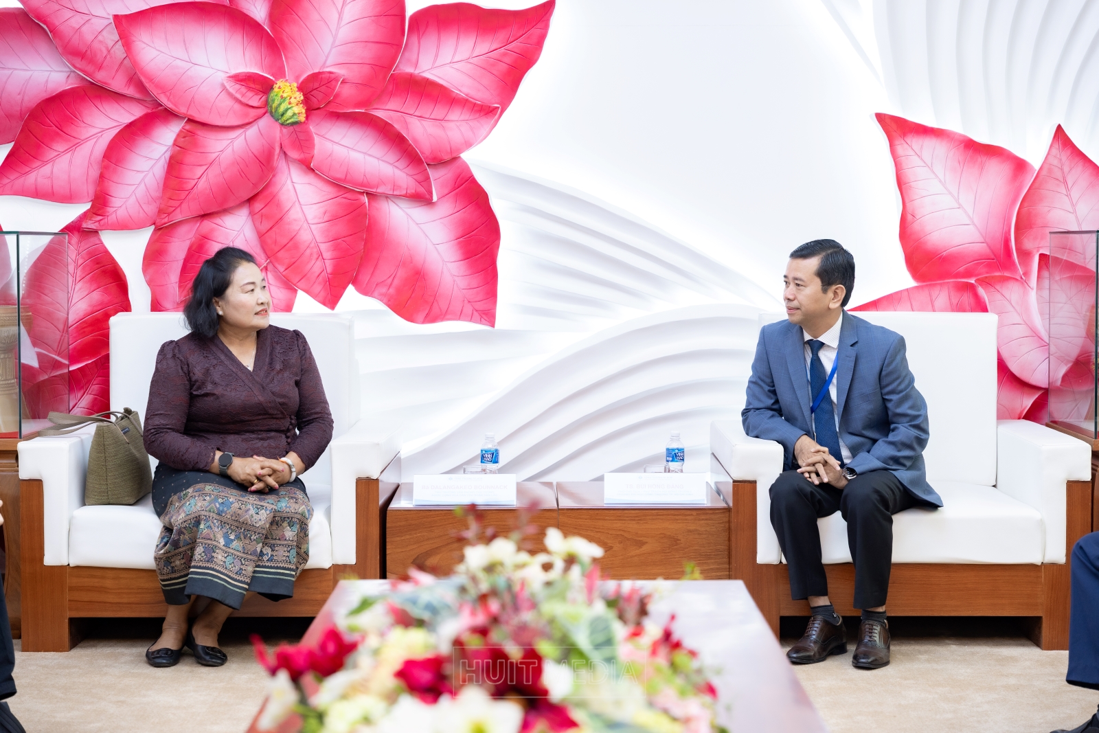 Trong không khí thân tình và trọng thị, TS. Bùi Hồng Đăng bày tỏ niềm vui khi được đón tiếp đoàn công tác Lào và nhấn mạnh HUIT luôn coi trọng mở rộng hợp tác quốc tế, đặc biệt với nước bạn Lào – người bạn truyền thống gắn bó của Việt Nam. Ông tin tưởng rằng chuyến thăm và làm việc lần này sẽ mở ra nhiều cơ hội hợp tác thiết thực, góp phần thắt chặt tình hữu nghị Việt – Lào trên lĩnh vực giáo dục và văn hóa.