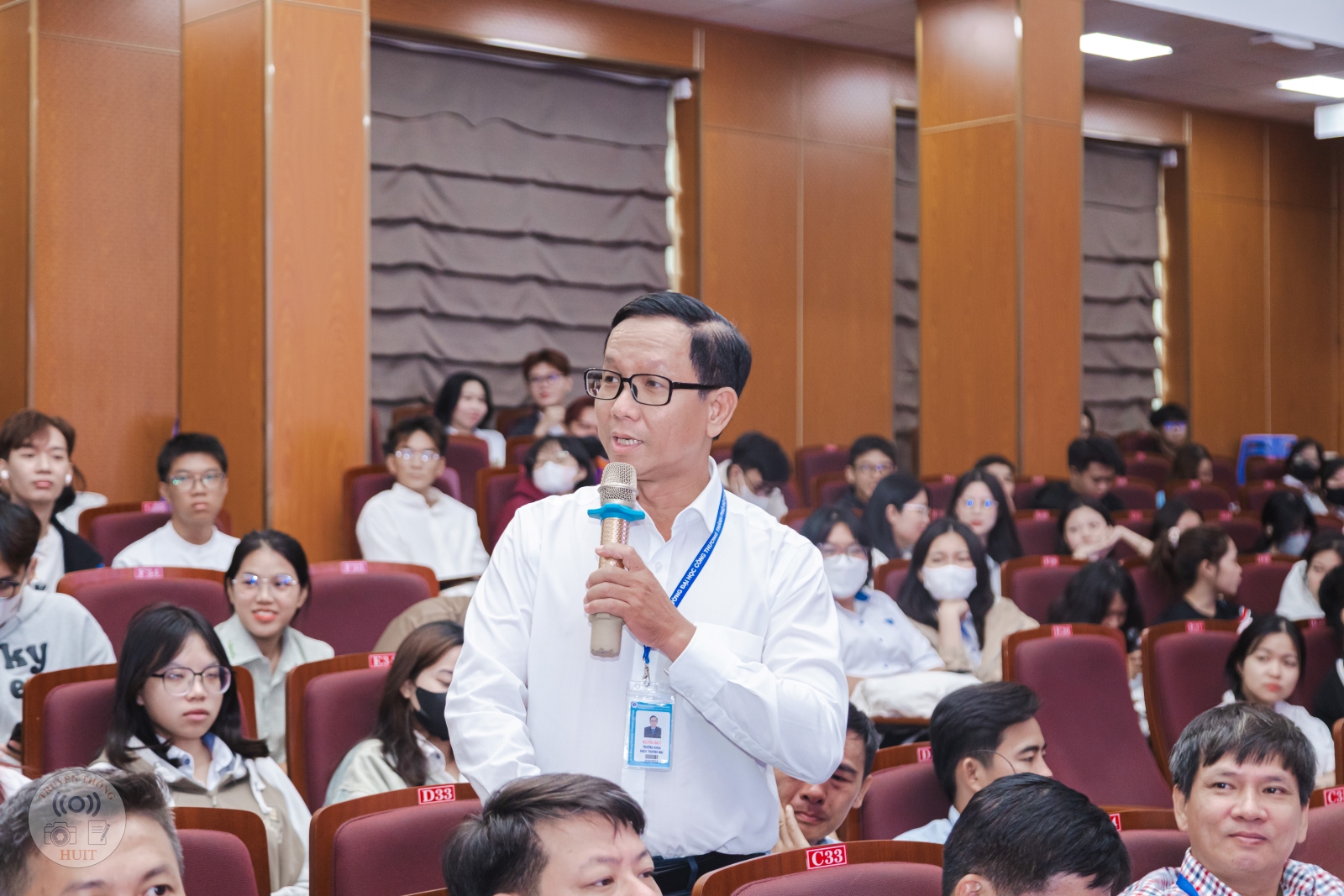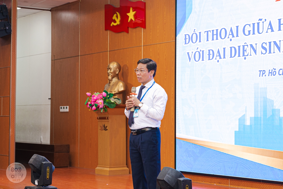 PGS.TS Nguyễn Xuân Hoàn nhấn mạnh: “Sinh viên là trung tâm của mọi hoạt động giáo dục. Việc nâng cao chất lượng đào tạo, đầu tư hạ tầng hiện đại và xây dựng môi trường học tập hiệu quả là trách nhiệm xuyên suốt của nhà trường.” Hiệu trưởng cũng chỉ đạo các đơn vị chuyên môn tiếp tục phối hợp chặt chẽ, chủ động hỗ trợ sinh viên, khuyến khích phản hồi hai chiều và thúc đẩy tinh thần đổi mới sáng tạo. Buổi đối thoại không chỉ là dịp để sinh viên được lắng nghe và được thấu hiểu, mà còn là minh chứng rõ ràng cho cam kết của HUIT trong việc xây dựng nền giáo dục tiên tiến, nhân văn, hiện đại - nơi mọi ý kiến đều được tôn trọng, và mỗi hành trình học tập đều được đồng hành, sẻ chia, tạo điều kiện thuận lợi nhất để sinh viên phát huy năng lực và vững bước trong hành trình hội nhập.