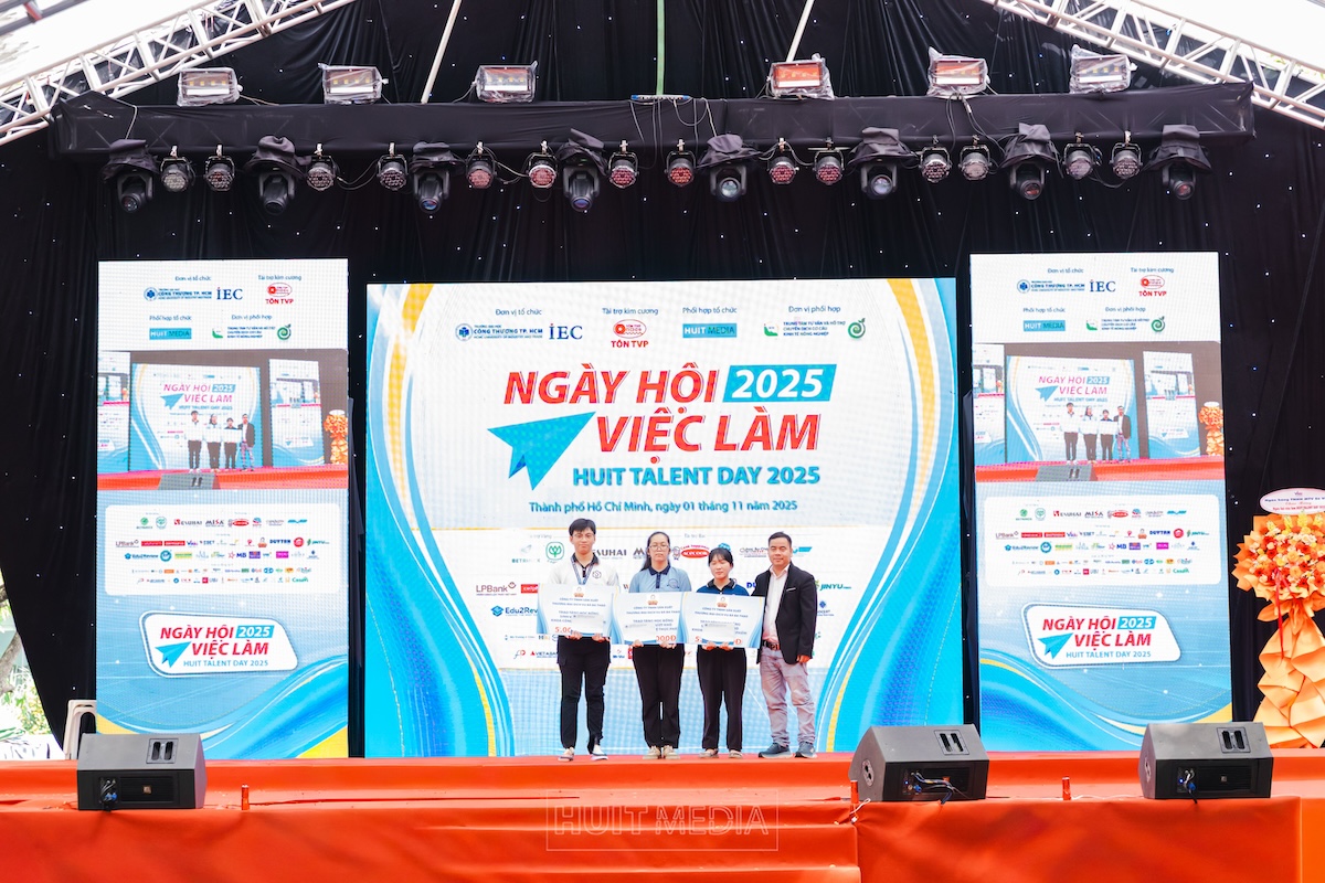Chương trình tiếp tục với hoạt động trao học bổng doanh nghiệp dành cho các sinh viên vượt khó, học giỏi. Công ty Cổ phần Chăn nuôi C.P. Việt Nam trao 4 suất học bổng trị giá 20 triệu đồng; Công ty TNHH Sản xuất – Thương mại – Dịch vụ Bà Ba Thạo tặng 3 suất học bổng trị giá 15 triệu đồng; Công ty TNHH WESET English Center trao 500 suất học bổng tiếng Anh với tổng trị giá hơn 2,2 tỷ đồng; Công ty Cổ phần TopCV Việt Nam tặng 300 tài khoản học tập TopCV Education VIP. Những phần học bổng này không chỉ là nguồn động viên về vật chất mà còn là sự khích lệ tinh thần, giúp sinh viên HUIT thêm vững bước trên hành trình chinh phục tri thức và nghề nghiệp.