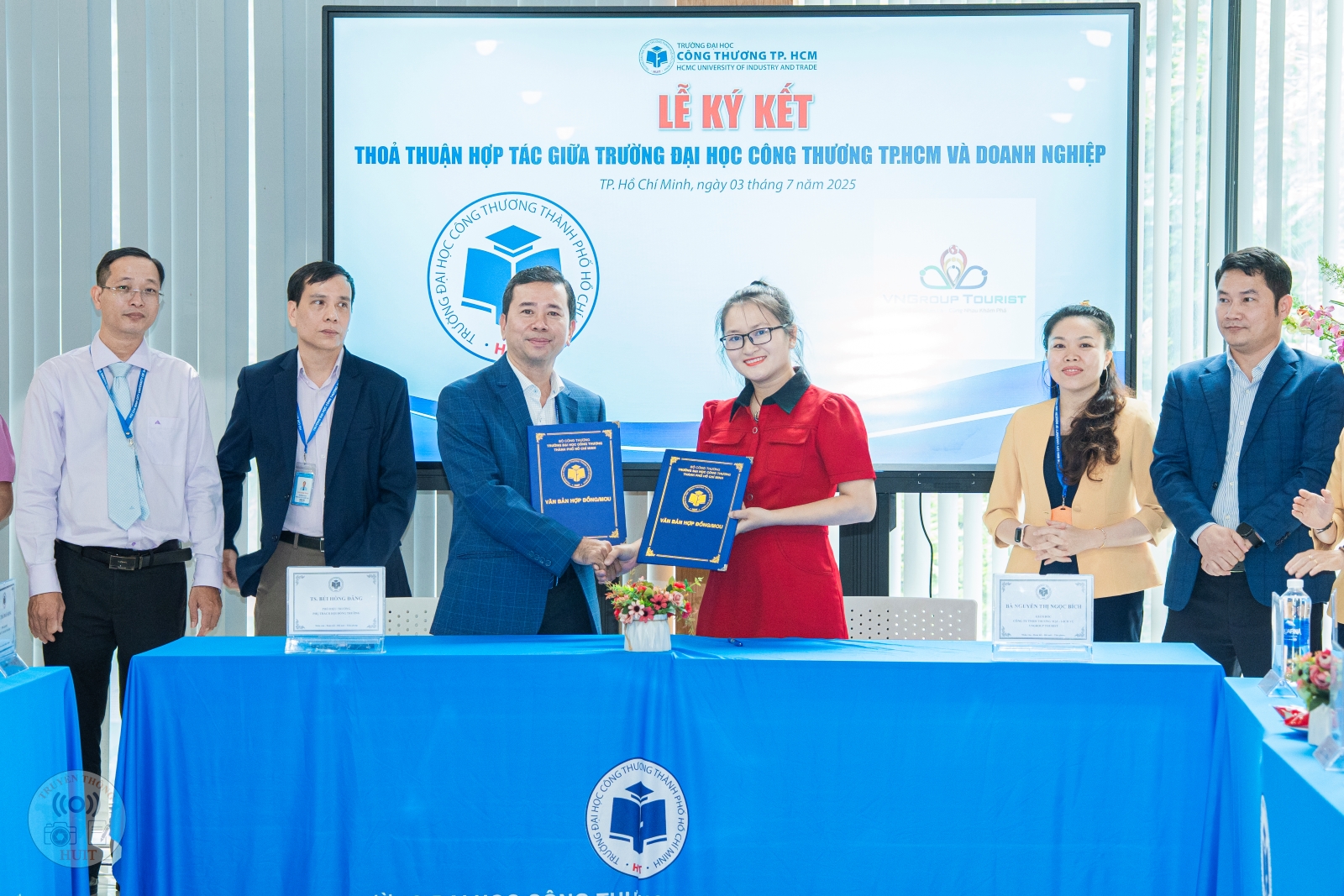 Vào sáng ngày 03/07/2025, tại Trung tâm Thông tin Thư viện, Trường Đại học Công Thương TP.HCM đã tổ chức thành công Lễ ký kết thỏa thuận hợp tác với 20 doanh nghiệp uy tín trong ngành Du lịch và Ẩm thực. Đây là sự kiện trọng đại, đánh dấu một bước tiến chiến lược quan trọng trong việc kết nối nhà trường với doanh nghiệp, đặc biệt là đối với Khoa Du Lịch và Ẩm Thực. Lễ ký kết này không chỉ mở ra cơ hội phát triển nghề nghiệp cho sinh viên, mà còn góp phần nâng cao chất lượng đào tạo nguồn nhân lực, gắn kết lý thuyết với thực tiễn và tạo ra nhiều cơ hội nghề nghiệp cho thế hệ sinh viên tương lai.