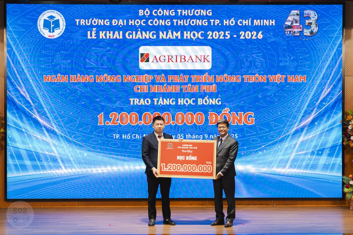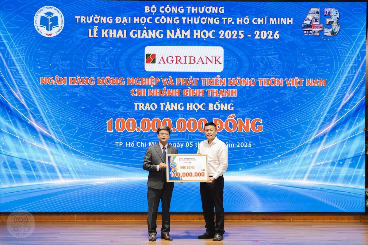 Trường Đại học Công Thương TP. Hồ Chí Minh trân trọng cảm ơn: Ngân hàng TMCP Đại Chúng Việt Nam (PVcomBank);Ngân hàng Nông nghiệp và Phát triển Nông thôn Việt Nam (Agribank) - Chi nhánh Tân Phú; Ngân hàng TMCP Sài gòn Thương tín (Sacombank) - Chi nhánh Bình Tân; Ngân hàng TMCP Ngoại thương Việt Nam (Vietcombank) - Chi nhánh Tân Bình; Ngân hàng Nông nghiệp và Phát triển Nông thôn VN (Agribank) - Chi nhánh Bình Thạnh; Công ty TNHH Mỹ Thành; Công ty cổ phần nội thất xây dựng Thành Thành Công; Ngân hàng TMCP Phương Đông (OCB) - Chi nhánh Phú Lâm; Công ty TNHH Jason Furniture Việt Nam; Công ty cổ phần năng lượng sinh học Phú Tài; Công ty TNHH TM-KT Phạm Gia Khang; Công ty cổ phần Cơ khí xây dựng Hồng Lĩnh; Công ty TNHH sản xuất dịch vụ thương mại Kim Mộc; Công Ty TNHH Thương Mại Và Đầu Tư T&N; Công Ty Cổ Phần Máy Tính Công Nghệ Việt; Tập đoàn CP Group Việt Nam; Tổng Công ty cổ phần bảo hiểm LPBank - Chi nhánh Gia Định; Hiệp hội Doanh nghiệp Việt – Đài; Công ty TNHH giải pháp phần mềm InnoIQ; Công ty TNHH quà tặng Việt Nam Toàn Cầu; Công ty TNHH Thương mại Mắt kính 999; Công ty Agrihub Việt Nam đã tài trợ học bổng cho sinh viên cho sinh viên Nhà trường.