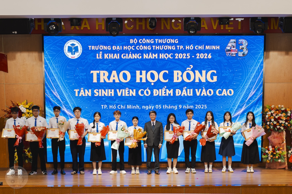 Một phần quan trọng của Lễ khai giảng là việc chào đón các Tân sinh viên khóa 16 và vinh danh Tân sinh viên khóa 16 đạt danh hiệu Thủ khoa, Á khoa đầu vào và TOP sinh viên có điểm tuyển sinh cao trong đợt tuyển sinh năm học 2025-2026 với tổng giá trị học bổng hơn 200 triệu đồng. Cũng trong buổi lễ khai giảng, Trường Đại học Công Thương TP. Hồ Chí Minh đã tiếp nhận nhiều học bổng đến từ các doanh nghiệp với tổng giá trị gần 3,5 tỉ đồng.