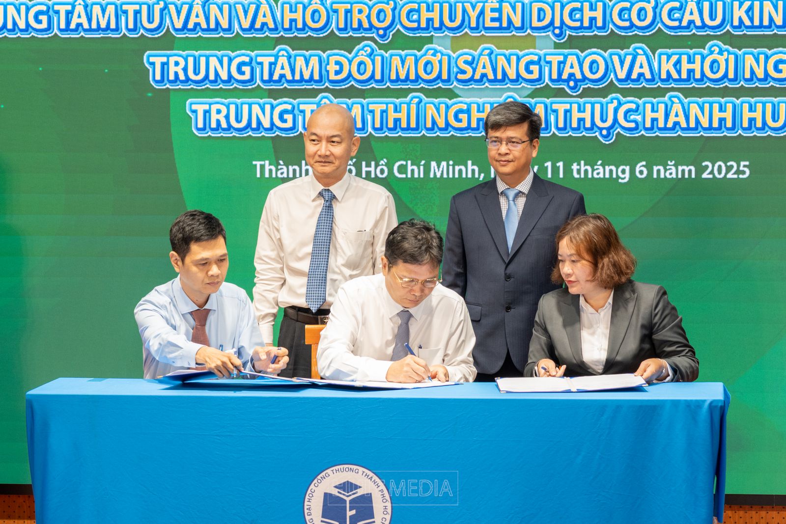 Ngay sau bài phát biểu đầy tâm huyết, một dấu mốc quan trọng đã diễn ra trong chương trình: Lễ Ký kết biên bản ghi nhớ hợp tác (MOU), đây là sự hợp tác chiến lược giữa Trung tâm Tư vấn và Hỗ trợ Chuyển dịch Cơ cấu Kinh tế nông nghiệp với Trung tâm Đổi mới Sáng tạo và Khởi nghiệp HUIT và Trung tâm Thí nghiệm Thực hành HUIT. Việc ký kết MOU hứa hẹn sẽ mở ra nhiều hợp tác mới để cùng nhau chung tay trong việc thúc đẩy hệ sinh thái đổi mới sáng tạo, mở ra nhiều cơ hội mới cho sinh viên, cộng đồng khởi nghiệp và phát triển, đổi mới sáng tạo cho nước nhà đặc biệt trong lĩnh vực nông nghiệp.