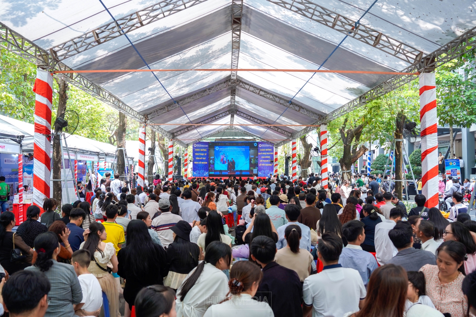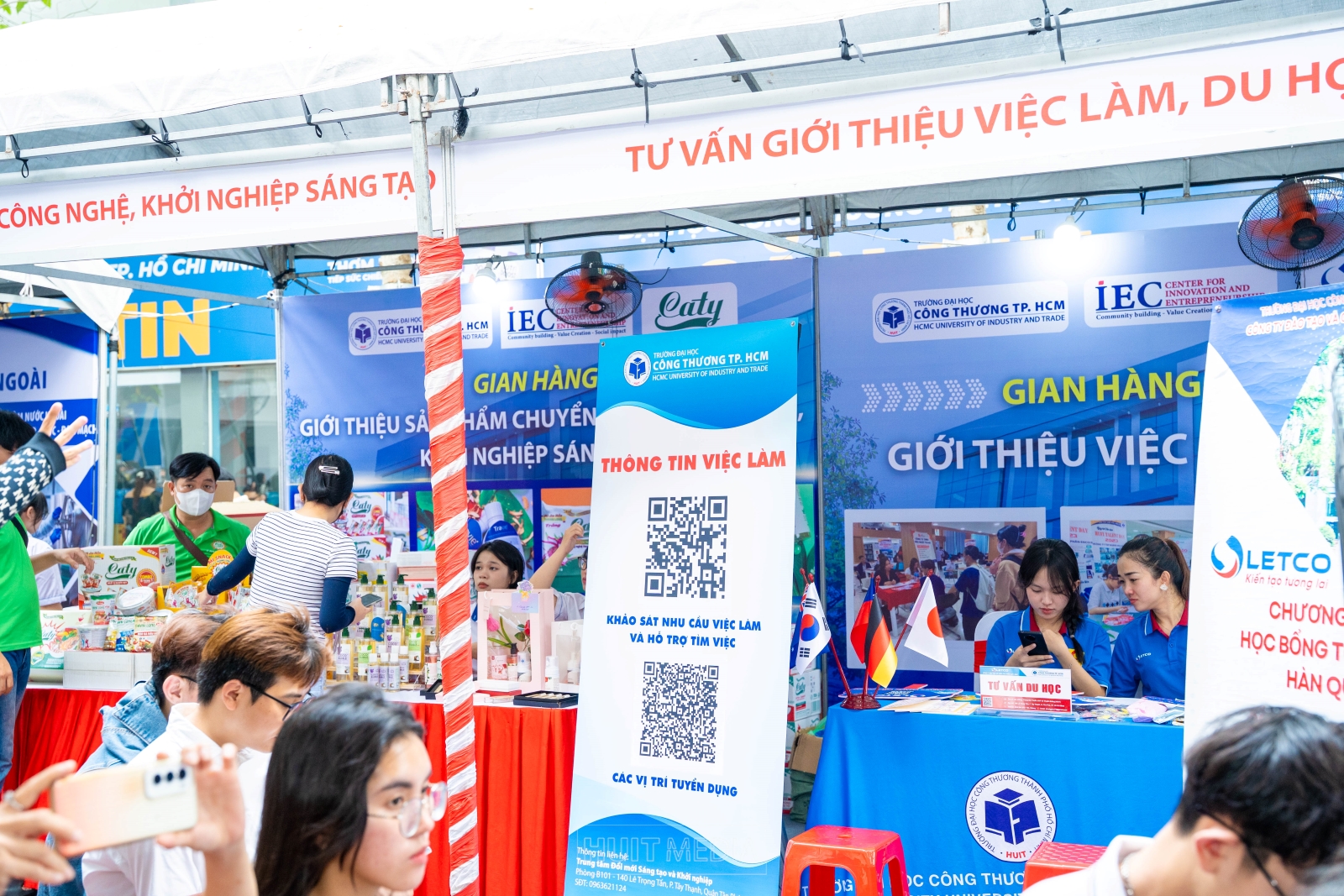Các gian hàng khởi nghiệp và việc làm du học dưới sân trường tại Lễ Tốt nghiệp