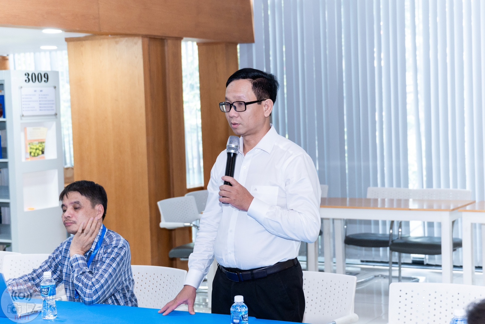 Phần đầu của tọa đàm được mở đầu bởi TS. Bùi Hoàng Ngọc, người đã chia sẻ các công cụ hữu ích giúp giảng viên nâng cao hiệu quả trong nghiên cứu khoa học. Các công cụ được giới thiệu bao gồm phần mềm trích dẫn tự động như Endnote và Mendeley, giúp các nghiên cứu viên dễ dàng quản lý tài liệu tham khảo và trích dẫn. Bên cạnh đó, Tiến sĩ Ngọc cũng hướng dẫn cách thức kích hoạt tài khoản và tải bài báo khoa học từ các tạp chí và nhà xuất bản uy tín, giúp các giảng viên tiếp cận những tài liệu nghiên cứu chất lượng.