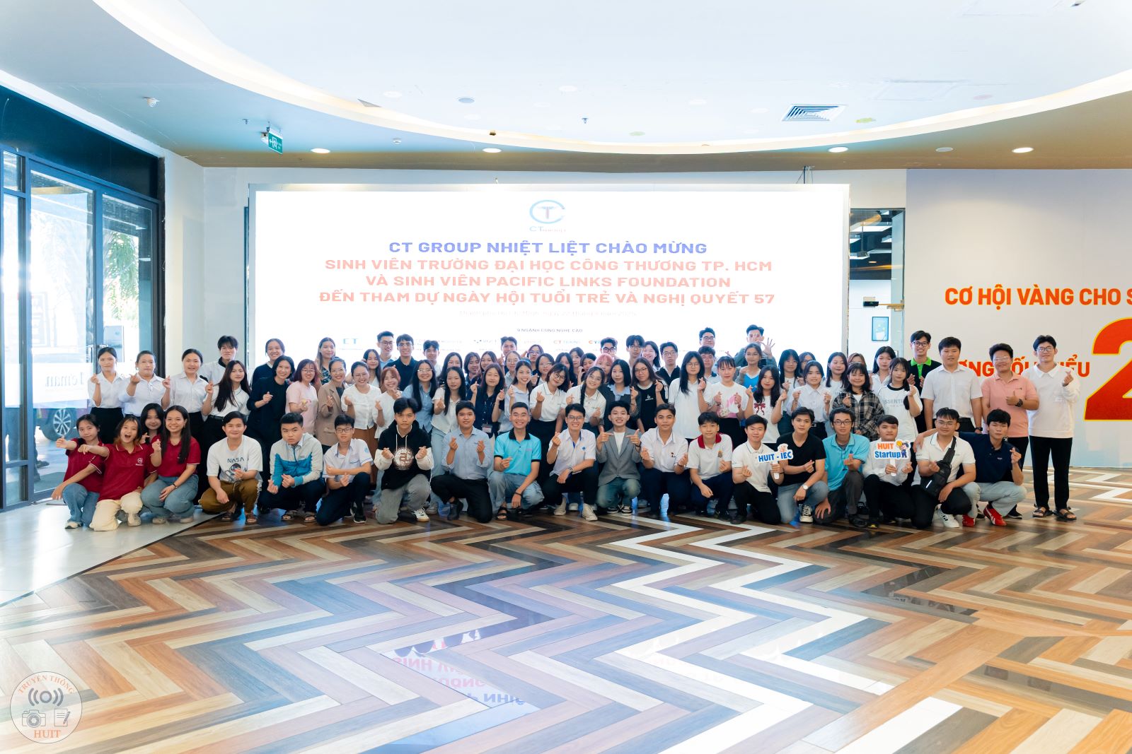 Không dừng lại ở trải nghiệm tham quan, buổi sáng còn ghi dấu với Lễ ký kết hợp tác giữa HUIT và CT Group, mở ra cơ hội đồng hành và hỗ trợ cho các dự án khởi nghiệp sinh viên.Ngay sau đó, sinh viên tiếp tục được tham gia Open Talk 57 với chủ đề “Khát vọng vươn mình của tuổi trẻ Việt Nam dưới ánh sáng của Nghị quyết 57”. Tại diễn đàn này, các bạn trẻ được truyền cảm hứng từ những câu chuyện, định hướng khởi nghiệp gắn liền với tầm nhìn phát triển của đất nước.