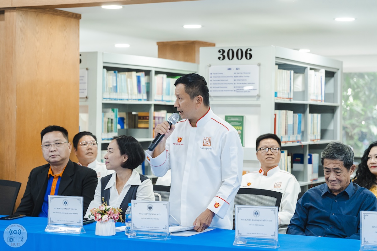 Đại diện Hiệp hội Ẩm thực TP.HCM, Phó chủ tịch Hiệp hội, Chủ tịch Hội Đầu Bếp TP.HCM đã chia sẻ tại buổi lễ về vai trò của Hiệp hội trong việc kết nối doanh nghiệp, nghệ nhân, chuyên gia ẩm thực và các đơn vị đào tạo nhằm quảng bá giá trị ẩm thực Việt Nam ra thế giới. Ông nhấn mạnh Hiệp hội luôn mong muốn đồng hành với HUIT trong việc phát triển nguồn nhân lực trẻ chất lượng cao cho ngành du lịch & ẩm thực, đưa ẩm thực TP.HCM trở thành ngành kinh tế mũi nhọn, phát triển bền vững trong tương lai.