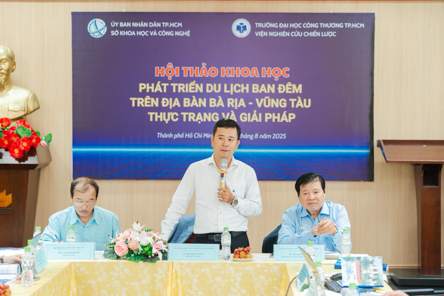 Trong bối cảnh Chính phủ Việt Nam đang thúc đẩy phát triển kinh tế ban đêm như một chiến lược quan trọng, sáng ngày 01/8 tại phường Bà Rịa, Trường Đại học Công Thương TP. HCM phối hợp Sở Khoa học và Công nghệ TP. HCM đã tổ chức hội thảo khoa học với chủ đề “Định hướng phát triển sản phẩm du lịch ban đêm trên địa bàn Bà Rịa - Vũng Tàu” nhằm chia sẻ kết quả nghiên cứu và đề xuất các giải pháp phát triển sản phẩm du lịch ban đêm tại Bà Rịa - Vũng Tàu.